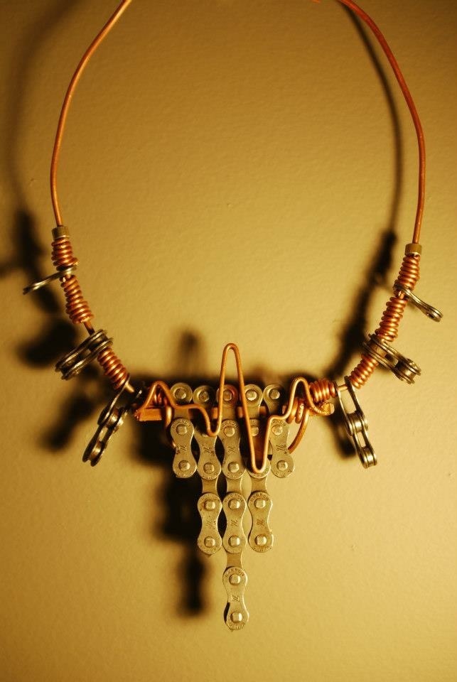 1 leftBike chain necklace$150$150https://schema.org/LimitedAvailabilityusdseveryndesignsseveryndesignsUpcycled bike chain link and copper tiered necklace.Add to cartAdd to wishlist New wishlistShareShare on XShare on Facebook Copy linkCopy product URL